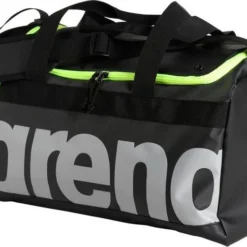 A spacious travel bag with a water-repellent coating, ideal for sports and leisure. Water repellent bottom, large main compartment and deep side pocket for wet clothes or shoes, breathable mesh panels for moisture control. Small side pocket, adjustable shoulder strap and padded handles.