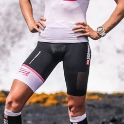 The TRIATHLON UNDER CONTROL SHORT – WOMAN mounted in seamless compressive tubes, fits perfectly around the crotch and activates blood circulation. Muscles, freed from lactic acids, perform without fatigue during longer workouts. Compression reduces muscle vibration by up to 25% and absorbs as much as 30% of shocks. A foamed Pro Pad with tiny perforations evacuates sweat faster for maximum comfort.