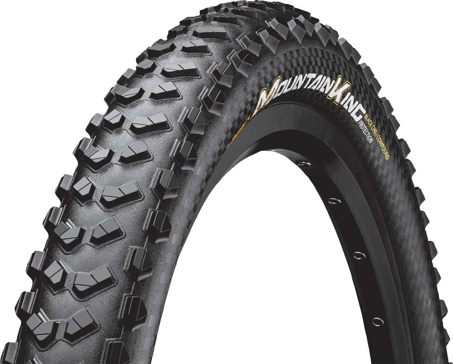The Continental Mountain King ProTection tire is the perfect trail ride companion – not stingy on grip, ideal for full-suspension trail bikes. Snappy central knobs and grippy outer knobs means it offers maximum grip. Excellent puncture protection thanks to high-quality, three-layer TubelessReady-enabled casing. Excellent grip and high mileage thanks to PureGrip Compound.