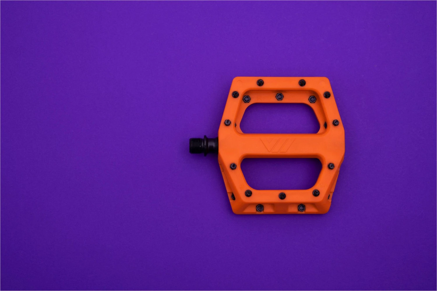 DMR V11 pedals prioritize durability, compliance, and affordability. Offering a wide concave platform, specific to DMR, which allows your foot to be placed in the center of the pedal for supreme grip. The glass fiber reinforced nylon body features eleven replaceable steel studs on each side for a solid grip.