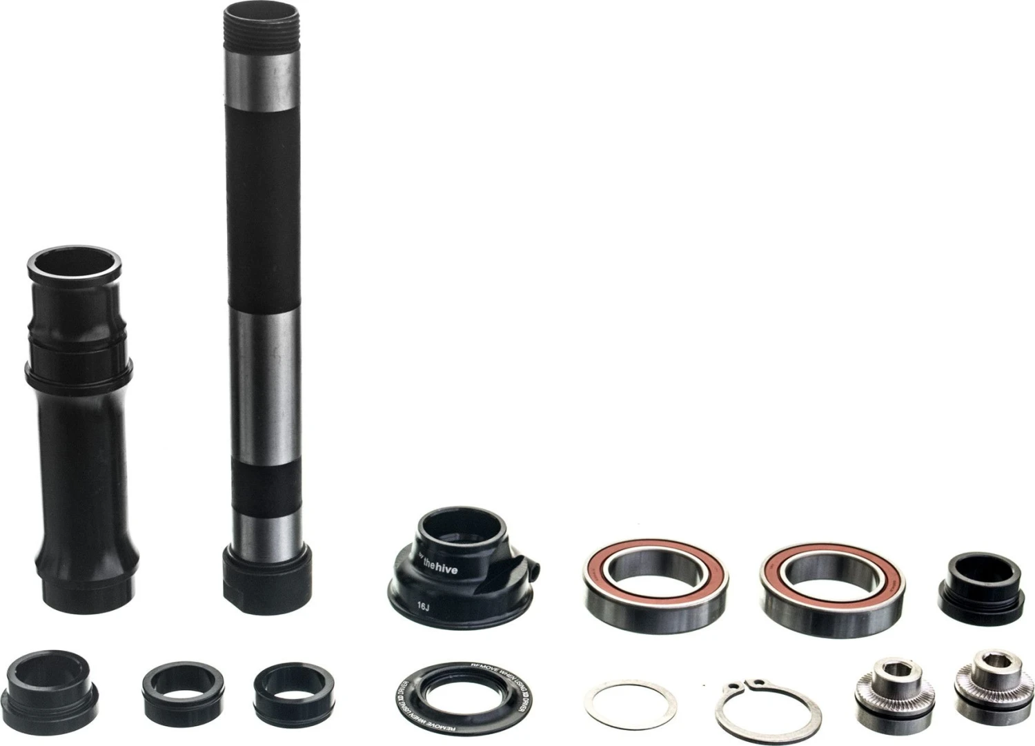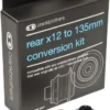 What’s in the box:Â Axle, axle sleeve, bearings x2, washer x2, axle bolt, c-clip, 142×12, 135×12, 135QR endcap