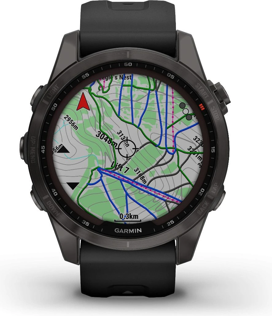 - Fenix 7S Sapphire Solar, titanium, Carbon Grey DLC with black strap: 010-02539-25