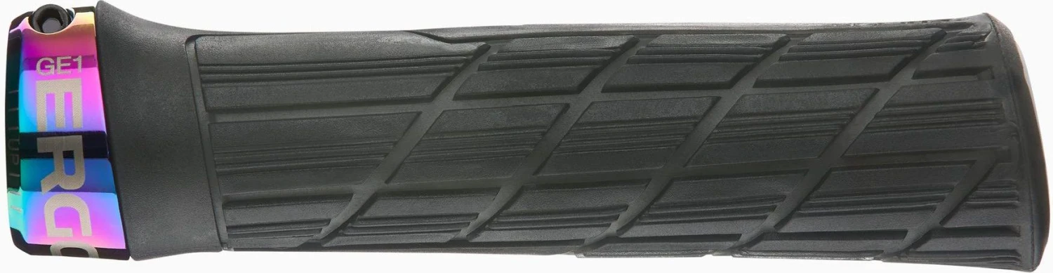 The evolution of the successful GE1. The new rider-oriented, ergonomic grip for wide riser bars. Thanks to the feedback collected from countless riders of the Enduro World Series, the Ergon design team succeeded in further improving the popular GE1 in certain details. Surface texture is now even more slip-proof and the rubber compound softer, lending constant precise grip. It actively supports the correct torso/forearm position during downhill riding – by rotating the grip area towards the steering axle by 8 % the elbows are automatically outwardly raised! Forged inner clamp, fully integrated grip end connected to the inner core (Pat. Pending) – this establishes a soft, damping grip edge, and your hand can grip right at the outer edge. Pressure is diminished from the sensitive ulnar nerve, which is located on the outside hand. Compatible with carbon handlebars.