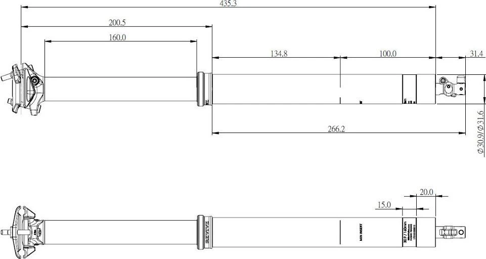 - Minimum insertion: 111mm for 125mm travel / 131mm for 160mm travel