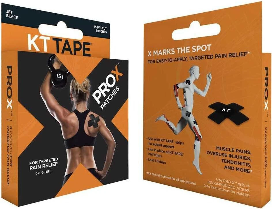 KT TAPE® PRO™ X™ is a kinesiology patch specially designed to provide targeted relief* for muscle pain, overuse injuries, and tendon-related pain and injuries. KT TAPE® PRO™ X patches were developed for the on-the-go, active consumer who appreciates a healthy lifestyle and doesn’t want to be slowed down by pain or complex taping applications. KT TAPE® PRO™ X will stay in place through multiple demanding workouts for one to three days.