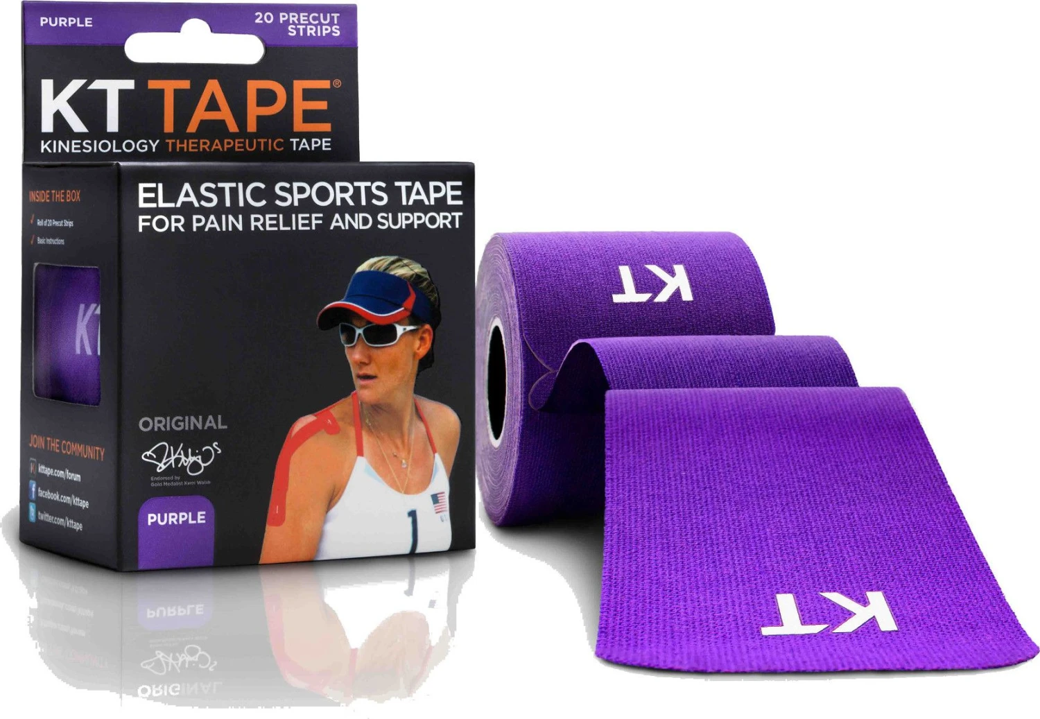 KT TAPE is precut and ready to apply right out of the box. Precut strips have rounded corners which help to prevent the corners from snagging on things or edges fraying. Each roll contains 20 10-inch “I” strips. That’s 16.6 feet for tape, all 2 inches wide for your mathletes out there.