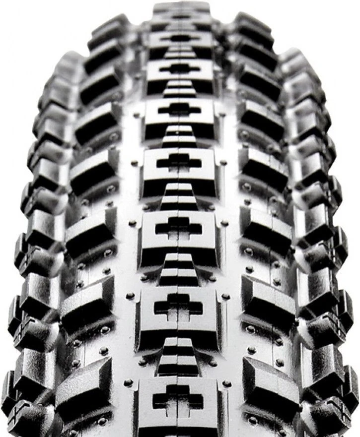 The crossMark is the dramatic evolution of the cross country racing tire. the nearly continuous center ridge flies on hardpack, yet has enough spacing to grab wet roots and rocks. the slightly raised ridge of side knobs offers cornering precision never before seen on a tire this fast.