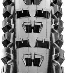 An open and aggressive tread design gives the Maxxis High Roller II excellent soil penetration and mud-clearing ability. A square profile provides a solid, consistent feel across the knobs. Modified knobs on the shoulder and center improve braking performance and traction on hard surfaces. An excellent choice for technical, freeride terrain.
