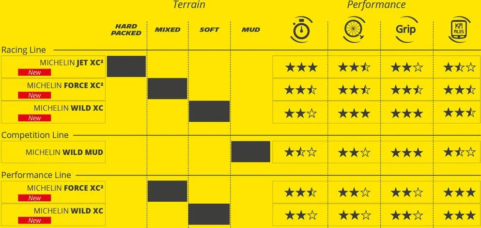 - Racing Line: Range of tires used at the highest level by Michelin professional riders.