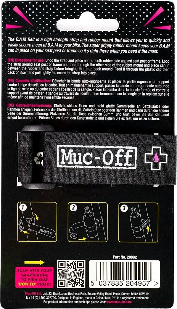 The Muc-Off B.A.M! Utility Belt is a high strength strap and rubber mount that allows you to quickly and easily secure a can of B.A.M! to your bike. The super grippy rubber mount keeps your B.A.M! can in place on your seat post or frame so it’s right there when you need it the most.