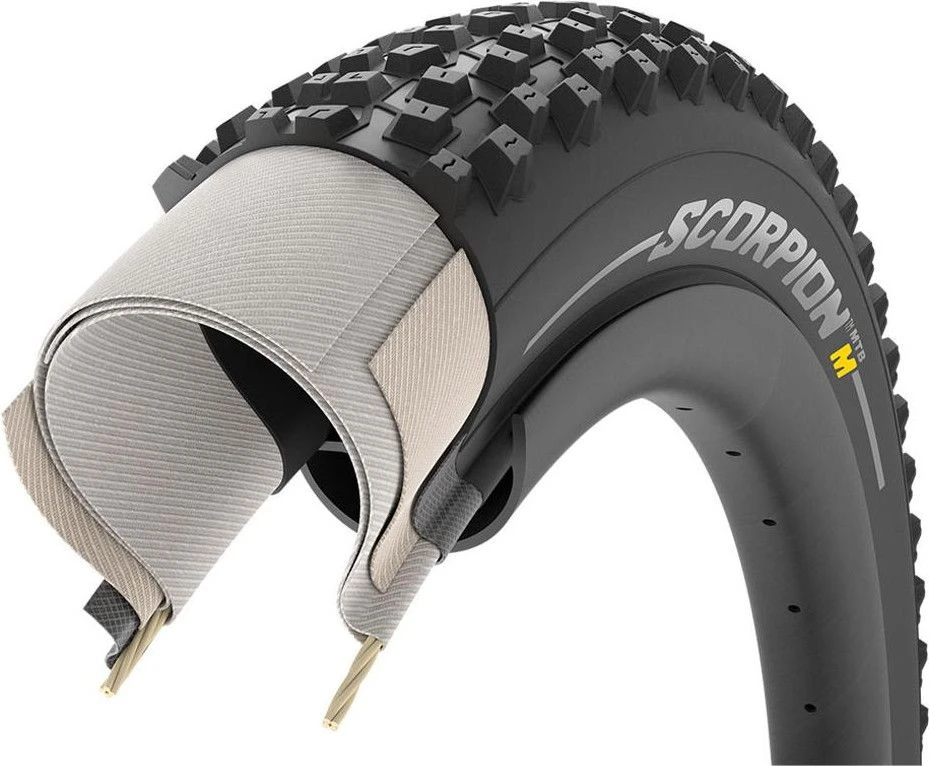 The Pirelli Scorpion MTB ” M ” Mixed Terrain is the all-terrain tire designed for mixed soils , with a variable coat between compact and irregular and all intermediate types. The tread is made with ribs of medium height and spacing to ensure excellent performance on a wide range of soils.