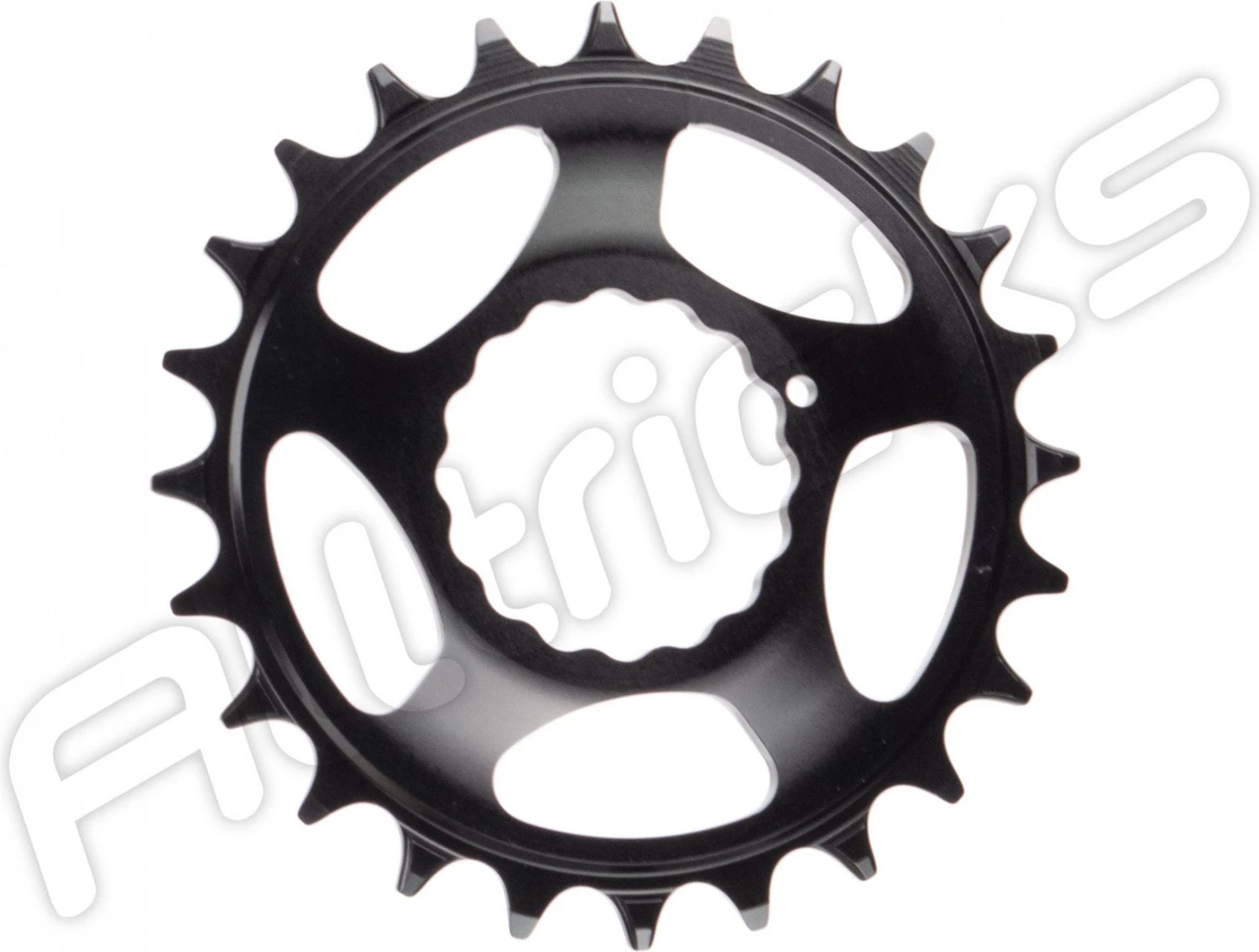 This chainring is designed with the narrow wide concept, one tooth out of two wider, allowing to ride single chainring without chain guide and especially without derailleur.