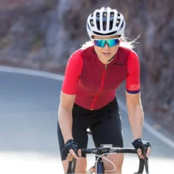 The side pockets are made from Rock fabric, a lightweight extra breathable mesh. Front reverse coil zip for greater ventilation. French collar and jacquard elastic band at the rear bottom of the jersey ensure it stays in position at all times. Triple back pocket. Developed in collaboration with World Tour Team Trek Segafredo rider Eugenio Alafaci.