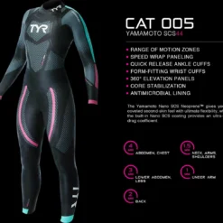 TYR Sport believes that having the best combination starts with having the best manufacture. As a result, every Hurricane Cat 5 is built with Yamamoto 44 cell neoprene. In addition, the Nano Super Composite Skin (SCS) coating process is used alongside manufacturing to improve comfort and freedom of movement. With both hydrophobic and hydrophilic properties, SCS repels water, provides high heat retention to reduce body fatigue, and provides incredible durability to prevent abrasions and increase product life. Rather than a standard seam construction, each Cat 5 also uses Speed Wrap panels to hug and hold you comfortably.