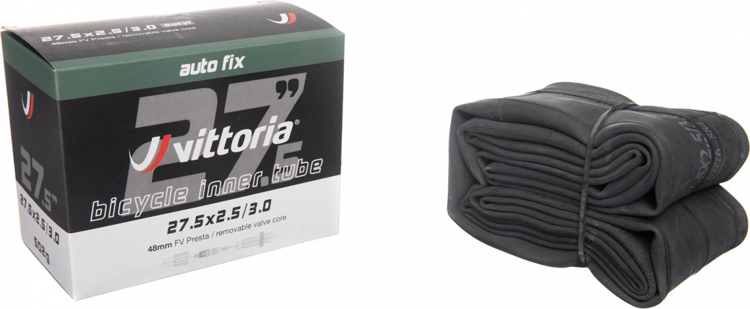 The Vittoria MTB Auto Fix chamber is made of Butyl from quality synthetic rubber, for a higher puncture resistance, its shell is removable allowing the injection of a preventive liquid.