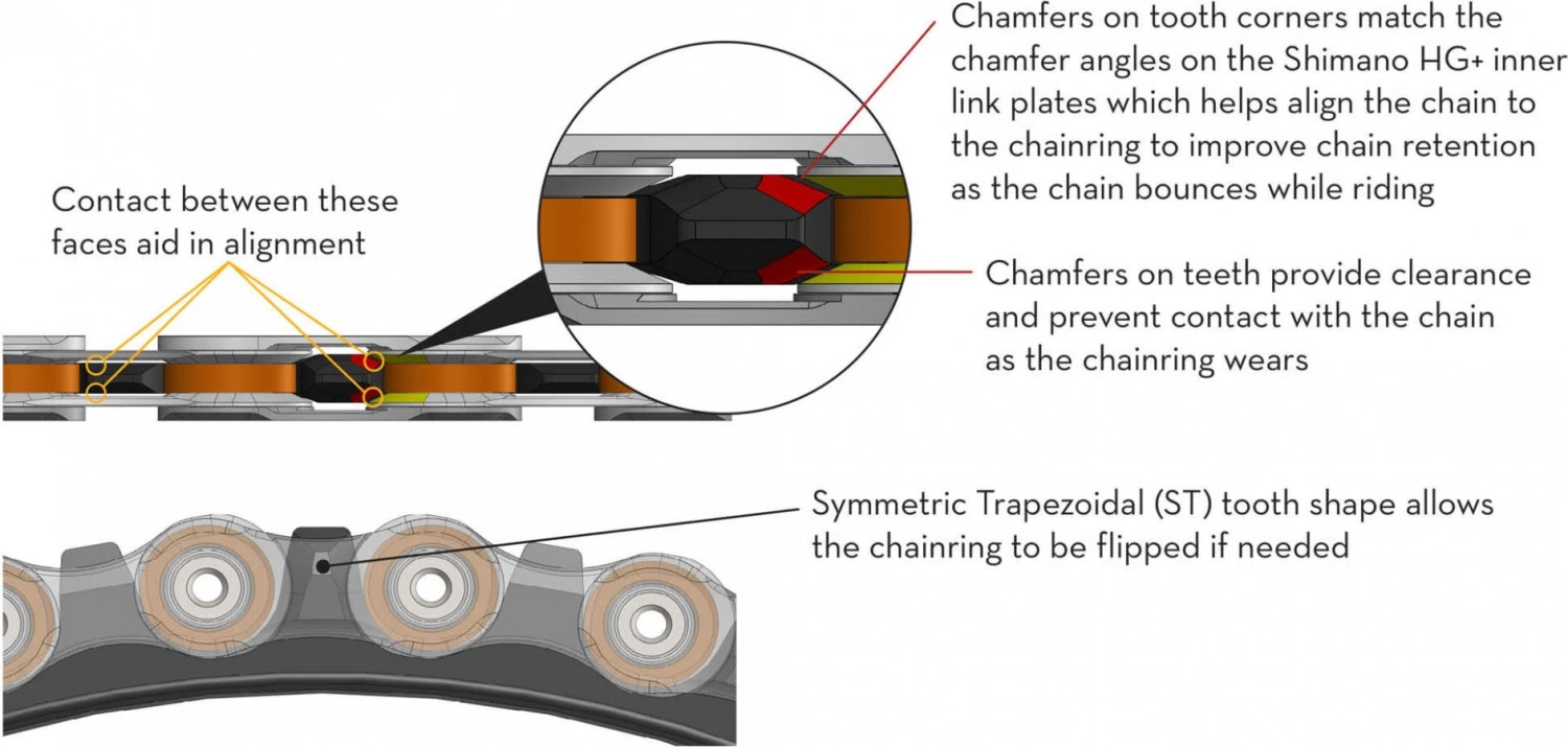 - Compatible with 12spd Shimano HyperGlide+ chain only. Symmetric Trapezoidal (ST) tooth shape is optimized for Shimano HG+ chain.