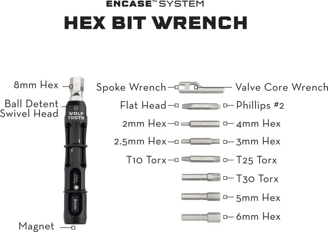 - Requires 4mm hex for chain tool driver which can be found on the EnCase Hex Bit Wrench.