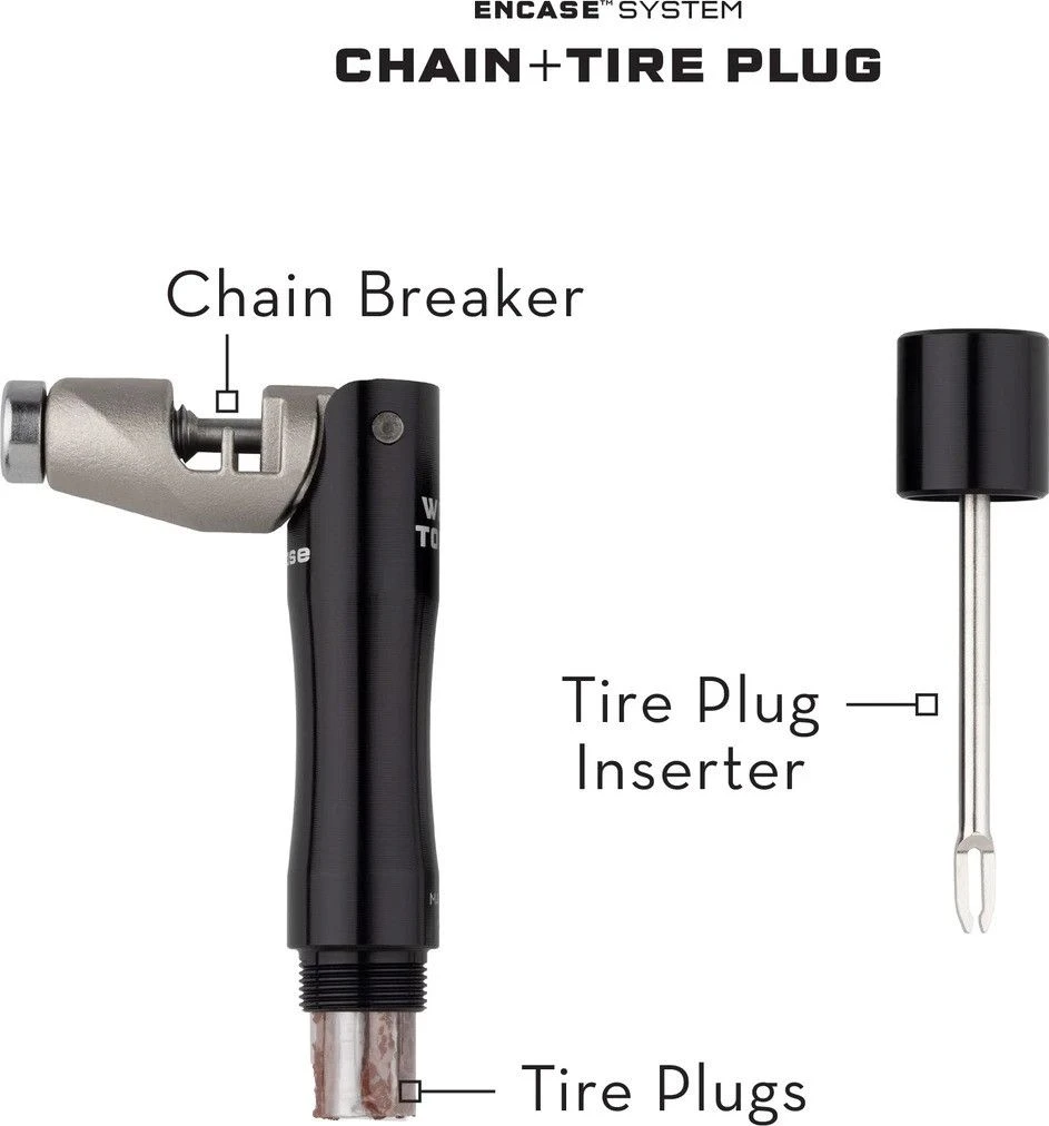 - Bonus storage space—fits a presta-to-schrader adapter and valve core or a master link (both sold separately EnCase System Extras).
