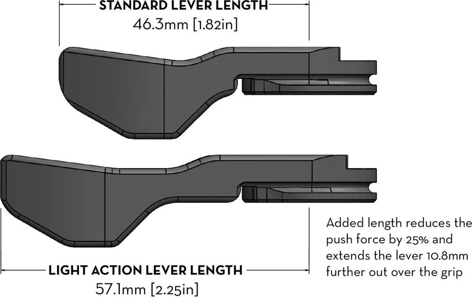 - If your post is not listed in the “ReMote Compatibility” charts, measure the pivot center to end of your current lever. If it is greater than 52mm the Light Action will work best. If it is less than 52mm, the Standard ReMote will work best.