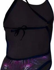 The new one-piece swimsuit features an athletic cut with an original design with contrasting bindings that will enhance the figure. Its straps cross, meet and adjust in the back to give you great freedom of movement on your arm strokes. They are tied in the middle of the back and thus adapt to all body types. A simple knot is enough to provide good support throughout the session, with minimal coverage in the back for even more ease.