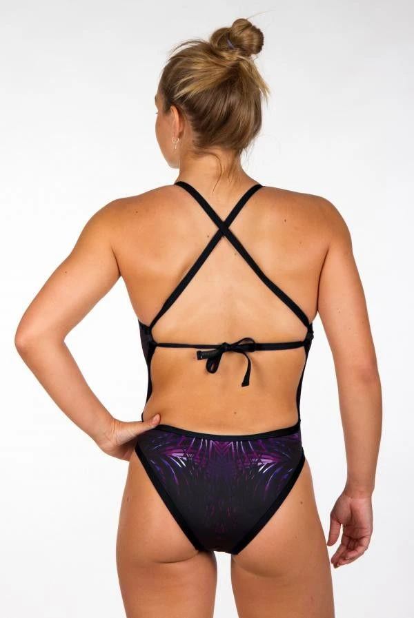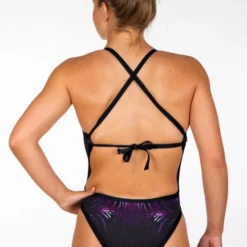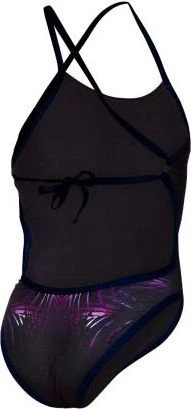 The new one-piece swimsuit features an athletic cut with an original design with contrasting bindings that will enhance the figure. Its straps cross, meet and adjust in the back to give you great freedom of movement on your arm strokes. They are tied in the middle of the back and thus adapt to all body types. A simple knot is enough to provide good support throughout the session, with minimal coverage in the back for even more ease.